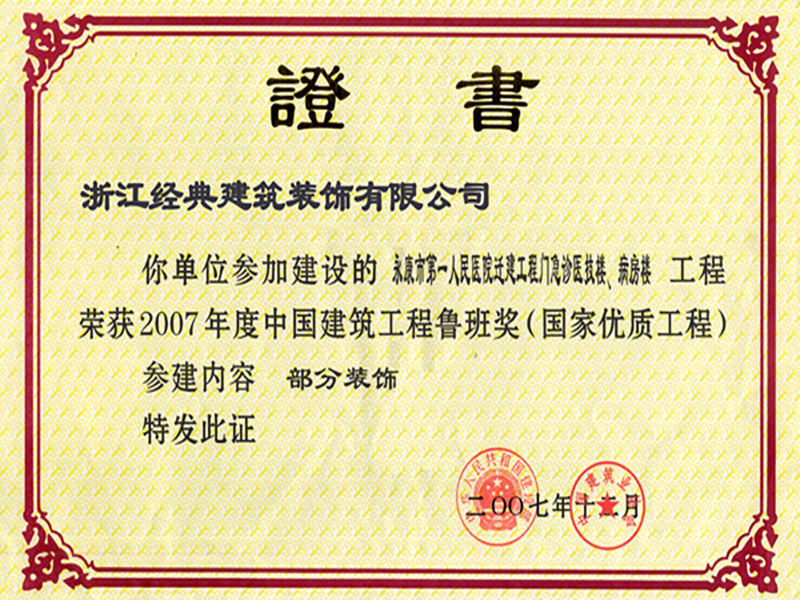 2007年第一人民醫院魯班獎...