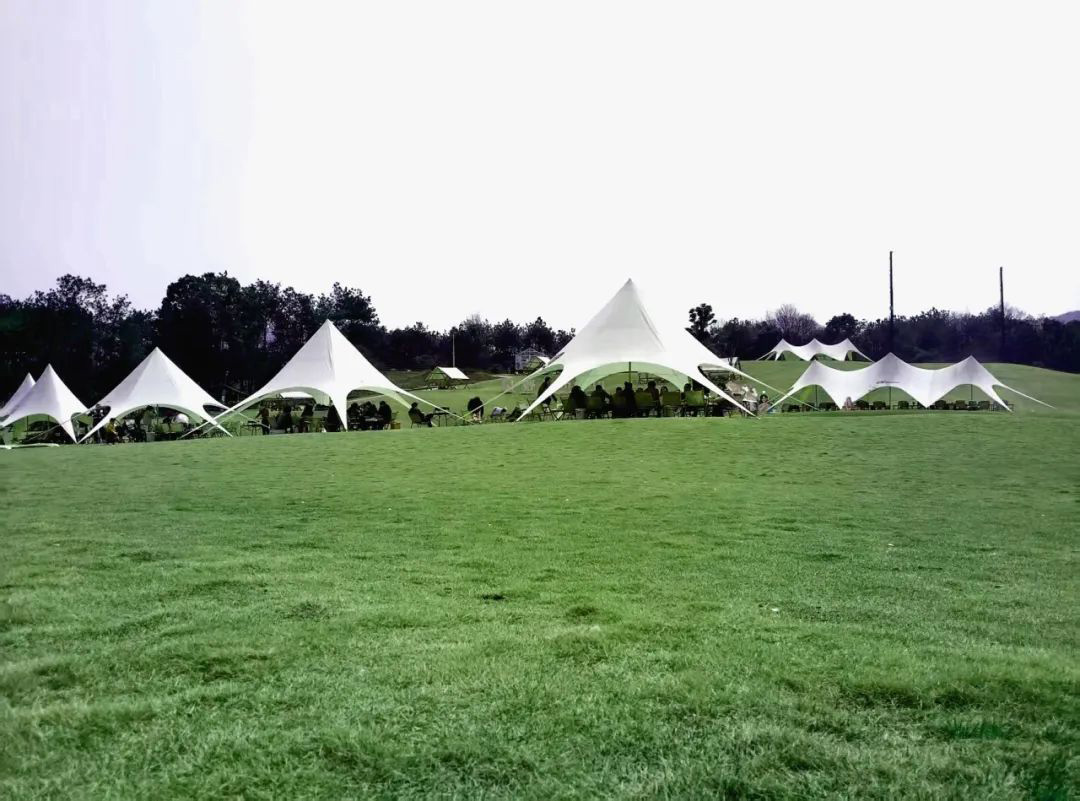 午后暖陽為星野Camping營地鍍上金邊,女員工們踩著茵茵綠草踏入童話之境。天幕如云棲息,帳篷似白帆輕揚,山嵐在遠(yuǎn)處調(diào)制青黛色水墨。當(dāng)清風(fēng)裹挾著鼠尾草香氣拂過發(fā)梢,時光突然變得蓬松柔軟。