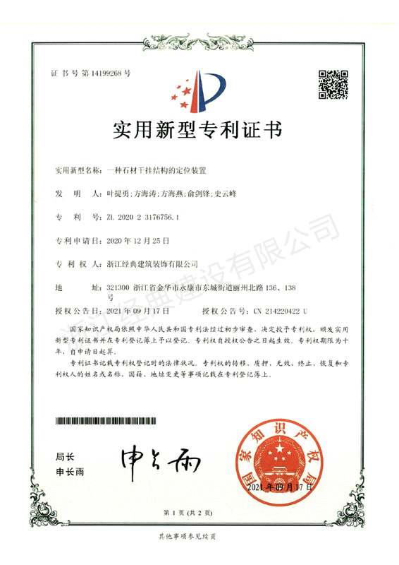 一種石材干掛結構的定位裝置