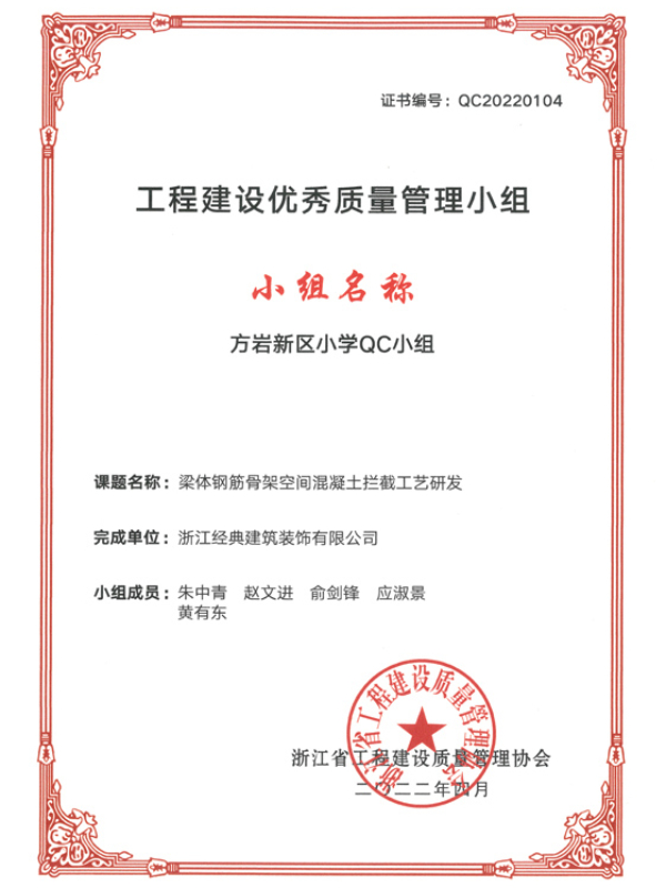 2022工程建設優秀質量小組...